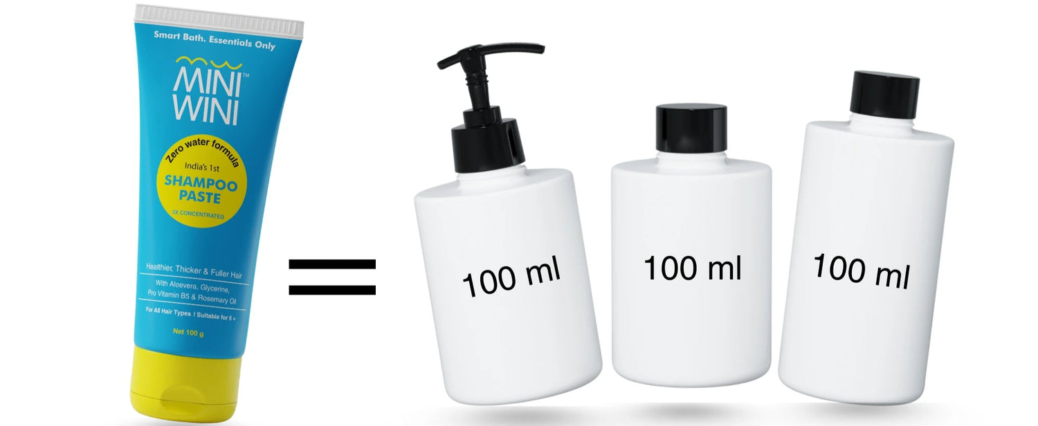 MINIWINI transforms travel care with its Aloe Base, Leakproof, Zero-Water Formula. Unlike water-based products that dilute benefits with 80% water, aloe deeply nourishes, soothes, and hydrates, promoting healthier hair and skin with every use. Our 3X concentrated Shampoo paste and Bodywash Paste deliver powerful care in a compact, spill-proof formula, making travel effortless. By eliminating water waste and reducing plastic, MINIWINI is a smarter, eco-friendly choice-light on your luggage, kind to your skin, and better for the planet. Travel smart with MINIWINI!