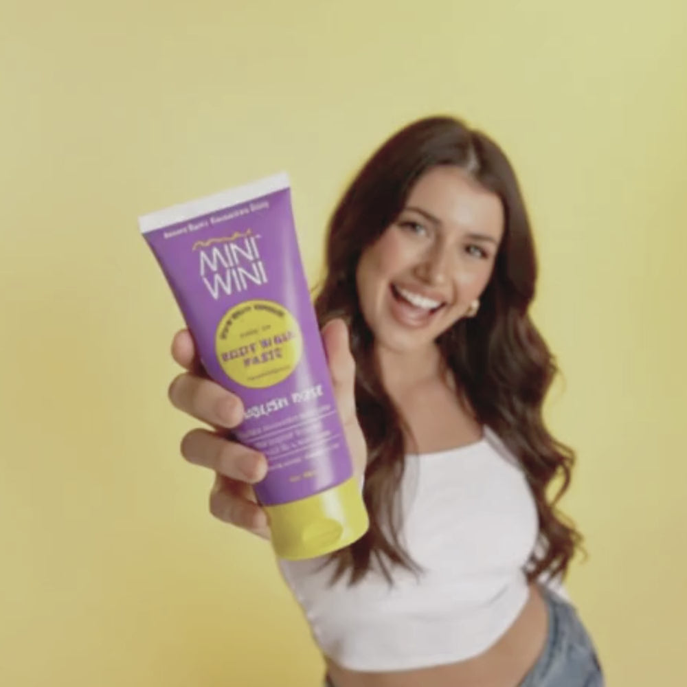 MINIWINI Bodywash Paste is a no-water formula body cleanser in a sleek, mess-free tube. Unlike liquid body washes that are mostly water, this concentrated paste is packed with skin-loving actives and rich botanical extracts.